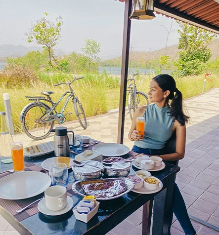 Start your day with the gentle sounds of the Narmada River, unwind as the evening sky